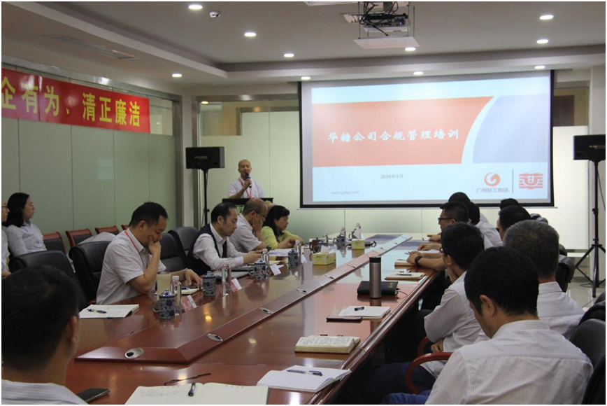华糖公司总经理黄志华根据公司合规管理体系建设工作的整体部署,提出以下四点工作要求:一是突出重点、突破难点,把合规管理体系建设落到实处;二是充分推动合规体系建设在完善公司制度方面发挥成效;三是构建合规管理体系融入日常,确保合规风险有效控制;四是强化合规保障,培育合规文化。