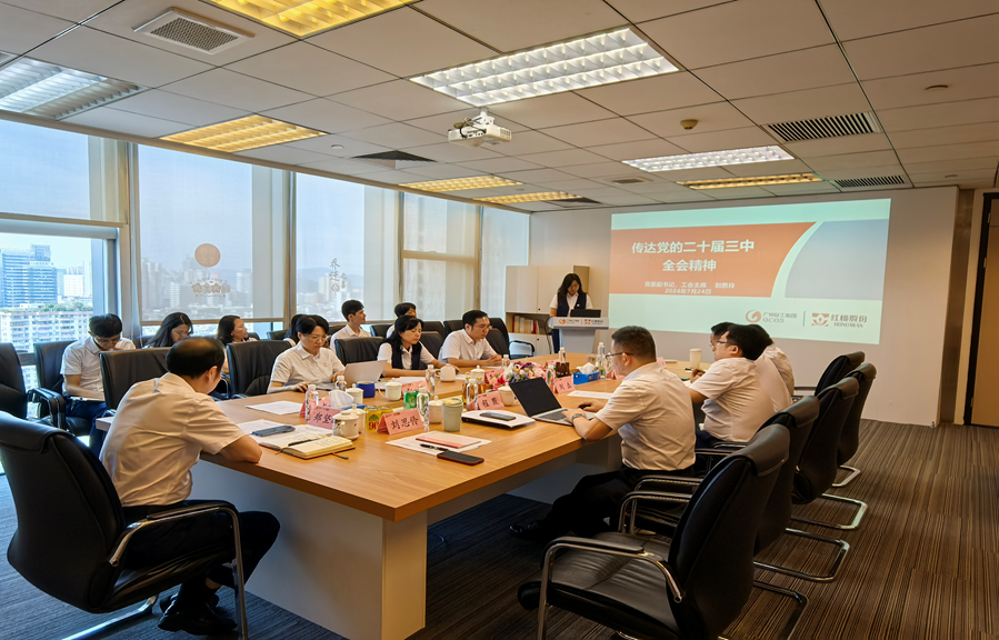 党委副书记、工会主席刘思伶传达了党的二十届三中全会精神和广州轻工集团2024年上半年工作会议精神。